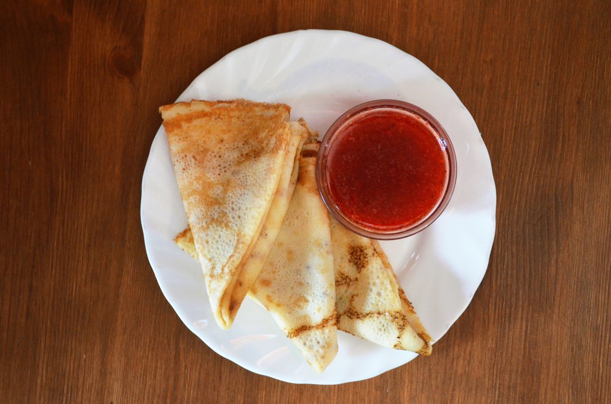 Блинчики с клубникой, протёртой с сахаром