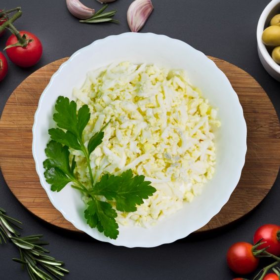 Сайра, морковь, картофель, яйцо, яблоко, лук, майонез